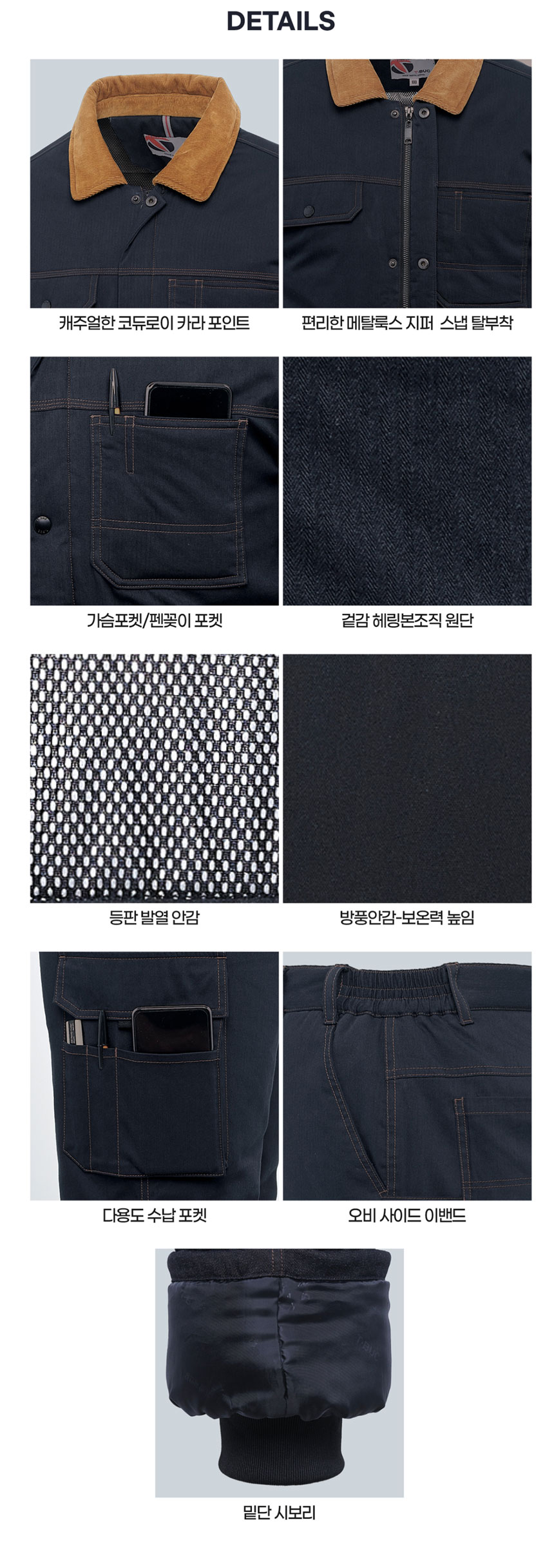 | 특징2 | : | 코듀로이 카라포인트 |